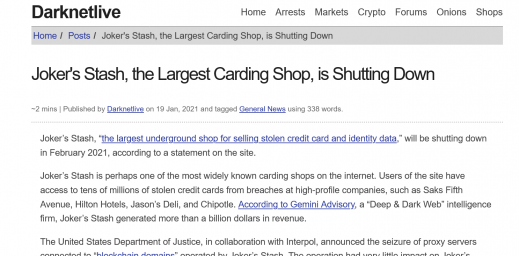 JokerStash, the shop administrator, posted the following message announcing the upcoming shutdown: Joker goes on a well-deserved retirement. Joker’s Stash is closing. When we opened years ago, nobody knew us. Today we are one of the largest cards/dumps marketplaces. Unfortunately, or fortunately - nothing lasts forever.More
